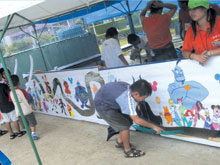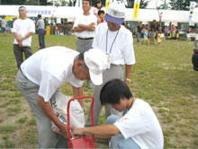 ラインを引くボランティア