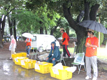 雨で大変! ‥ 会場内