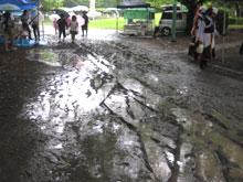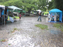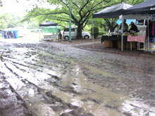 フリーマーケットゾーンもぬかるみの中‥