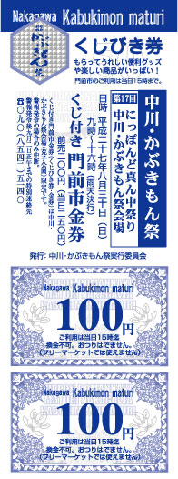 くじ付き門前市金券は前売り200円、かぶきもん祭当日の販売は250円です。