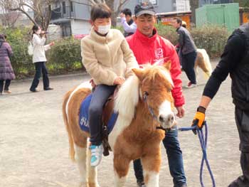 隣のミニスポーツ広場ではミニ新幹線やポニーへの乗馬が行われ、ちびっこ達が行列をなしていました。
