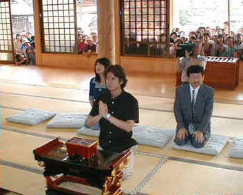 NHK大河ドラマ「利家とまつ」で、前田利家役で出演する人気俳優の唐沢寿明さんが、前田利家のゆかりの地「荒子観音寺」と「冨士権現社」を訪れました。