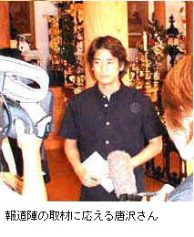 発信隊 俳優の唐沢寿明さんをお出迎え 平成13年8月6日