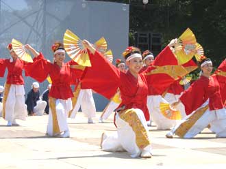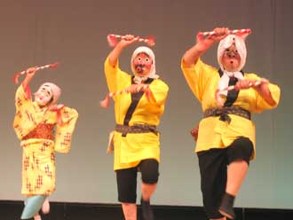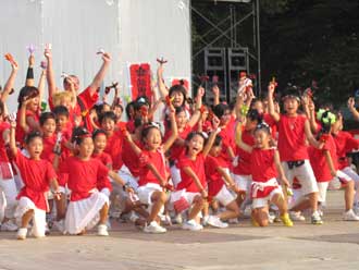 今年は気象台発表36度1分、会場体感温度は40度を遥かに超す暑い日射しの中でしたが踊り手も太陽に負けない熱気あふれる舞いを披露しました。