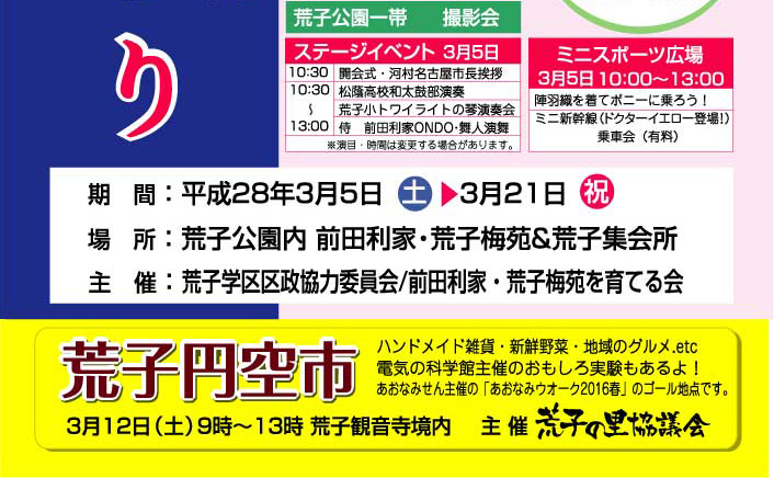2016年3月5日から3月21日まで荒子公園内の前田利家・荒子梅苑&荒子集会所にて
