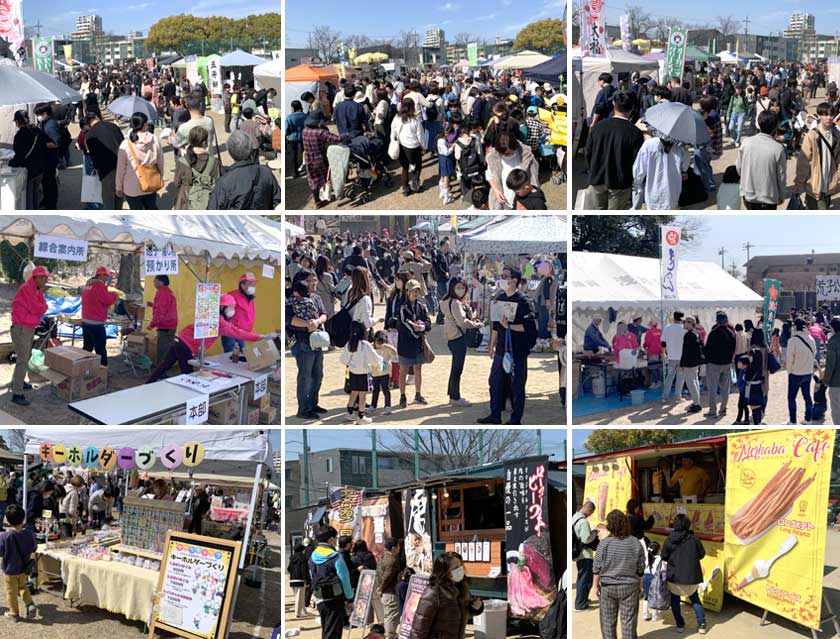 朝は時々降る小雨に心配しましたが、開催期間中は暖かな花日和でキッチンカーの飲食店や工夫を凝らした様々な出店に買い物客や子ども連れの来場者が引きも切らずショッピングを楽しむ姿で賑いました。