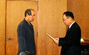贈られた記念品は、錫製の時計付文鎮で表面には梅鉢紋と梅の花を配し、裏面には「中川区まちおこし大賞、前田利家発信隊2003・2の刻印」があり、2年間のさまざまな想いがこもった記念品です。
